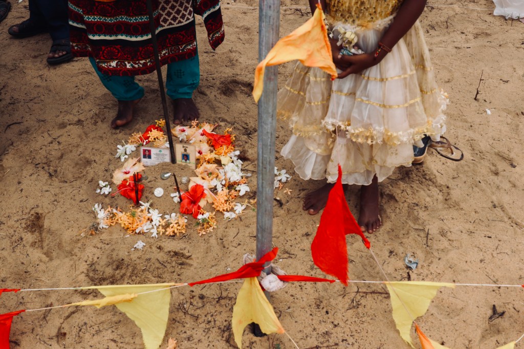 For several years after the war ended, communal mourning of the Tamil war dead was prohibited by the state. The politicisation of death and sacrifice in the service of nation and the interlinked visual cultures of remembrance consolidated by decades of ethno-nationalist conflict threaded through households, shops and public spaces in northern Sri Lanka. Commemoration continued in secret or publicly under heavy surveillance and intimidation, as communities grappled with the afflictions of the postwar. The 18th of May marks the anniversary of one of the most devastating massacres of Tamil civilians that took place in the final days of war at Mullivaikkal. The site, a bare sandy turf, is still riddled with the belongings of those who succumbed to the atrocities of the state; clothing, cooking utensils, family albums, radios, school bags half-buried in the soil now permanently composed of sand and violence. In spite of the overwhelming volume of credible evidence – visual, testimonial, forensic and cartographic – the Sri Lankan government continues to deny the lives lost claiming a ‘humanitarian operation’ that resulted in ‘zero civilian casualties’. The hundreds of defiant mourners who have gathered at the site each year suggested otherwise.