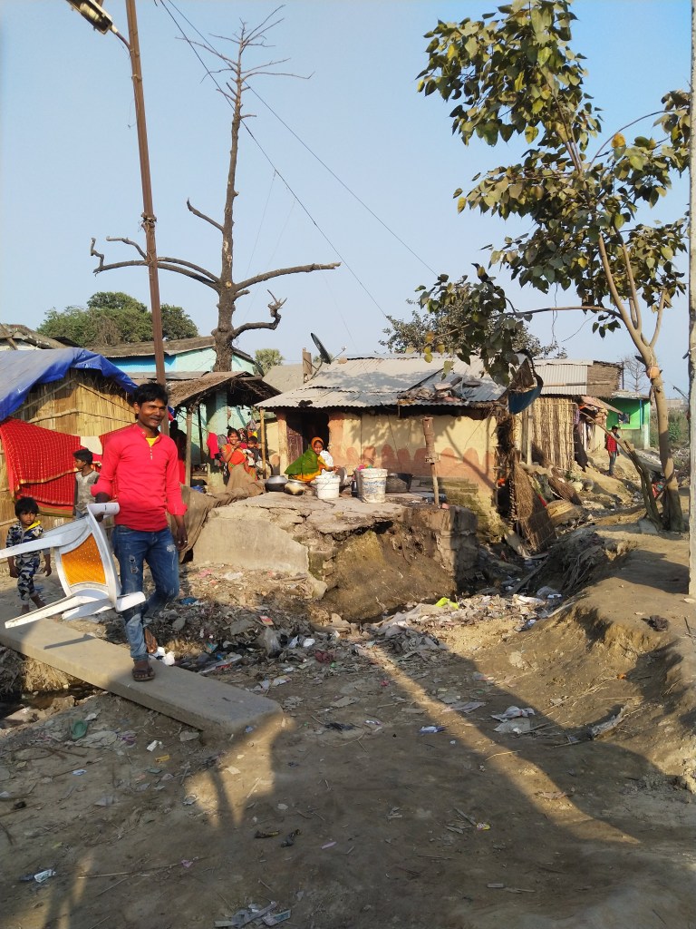 Veer very kindly helped me to understand Raxaul. He showed me around the neighbourhood, and introduced me to others. One such meeting was with the sanitation workers on the outskirts of Raxaul. We crossed the pukka built colonies toward the Sirsiya river that is now full of harmful chemical and other waste that comes mainly from Indian factories in Nepal. We crossed the dusty, garbage-filled banks towards the edge of the Indian border. There were many bikers moving to and from Nepal avoiding the main checkpoint and its never ending traffic. We crossed the unmarked border between the two countries once to enter Nepal and then to re-enter India to reach the mud sheds of the ‘out-casted borderlanders’. Children played in the sun with whatever they could find on the unbuilt dusty routes. There was no shortage of things for them to play with. Holding broken sticks, torn tyres, and animal bones, these children gazed at passers-by. As we reached the inside of this tiny settlement we were greeted by the locals. Veer introduced me and my project. One piece of information sufficed for them to see me as someone they should talk to rather than a threat: the name of the place I come from. I could see the interest in their eyes on hearing “Ye Dilli se aaye hai” (he has come from Delhi). They got us two chairs to sit on. For the next 15 minutes, they told me about how their wages had gone unpaid for two years. They told me about problems they faced with the bureaucracy and the politicians who signed them under government contracts. It was almost like their voices were being heard in the capital through me.